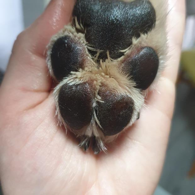 Bei der Pfotenpflege werden Krallen gekürzt und das überstehende Fell zwischen den Ballen geschnitten.